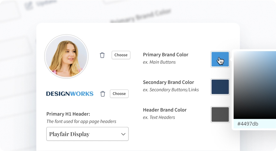 Customize your client portal with your logo, brand colors, and fonts so it feels like a natural extension of your design business.