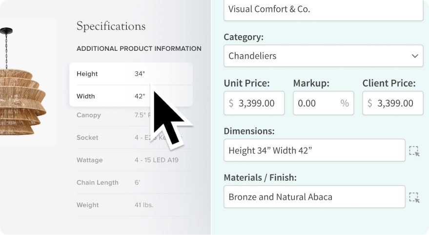 Every product you clip can be added instantly to quotes, invoices, POs, design boards and more speeding up your entire workflow.