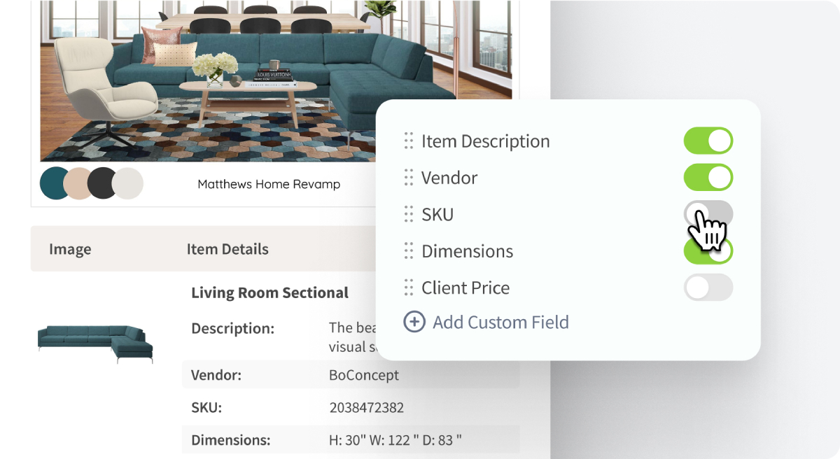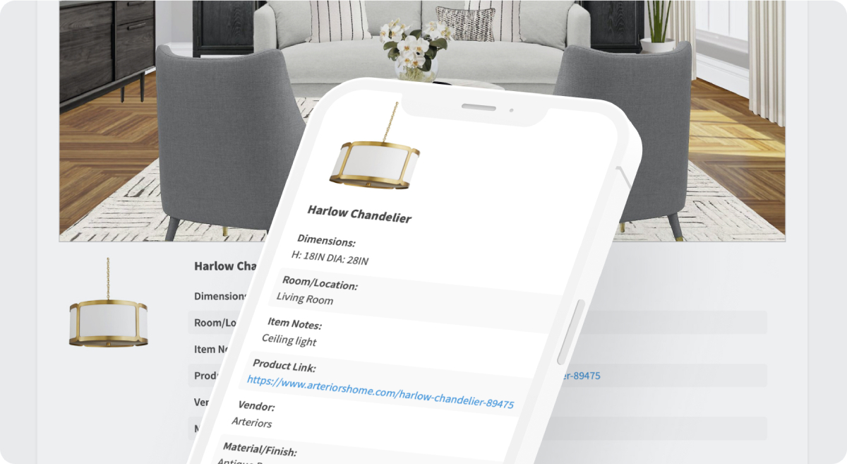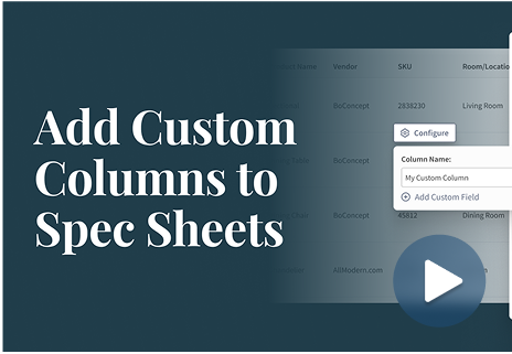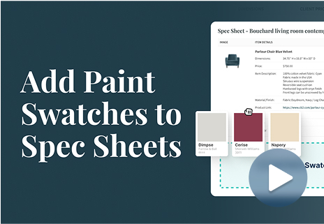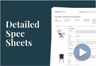 Your spec sheets and FF&E schedules reflect your brand, with your logo, colors, and professional formatting. Show you run a professional, detail-driven design business.